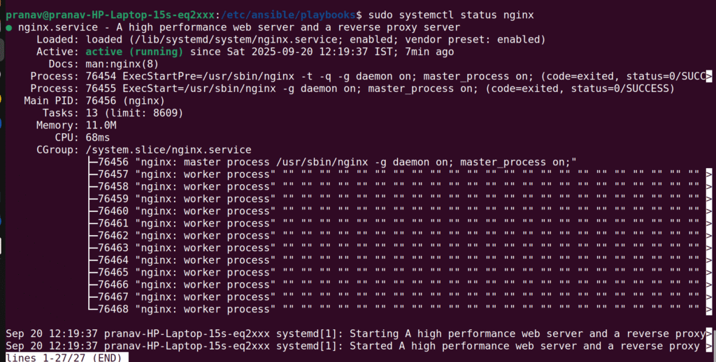 → Ensures Nginx is running. If it’s already running, Ansible does nothing (idempotent).enabled: true